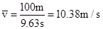 C.100m决赛中的平均速度约为10.38m/s