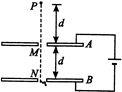 2、选择题 如图所示,A、B为平行金属板,两板相距为d,分别与电源两极相连,两板的中央各有一小孔M和N,今有一带电质点,自A板上方相距d的P点由静止自由下落(P、M、N在同一直线上),空气阻力忽略不计,到达N孔时速度恰好为零,然后沿原路返回,若保持两极间的电压不变,则:?(?)