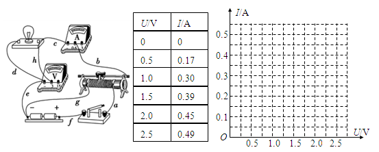 (2)某同学用导线a、b、c、d、e、f、g和h连接的电路如下图所示,电路中所有元器件都是完好的,且电压表和电流表已调零。闭合开关后发现电压表的示数为2V,电流表的示数为零,小灯泡不亮,则可确定断路的导线是?;若电压表示数为零,电流表的示数为0.3A,小灯泡亮,则断路的导线是?;若反复调节滑动变阻器,小灯泡亮度发生变化,但电压表、电流表示数不能调为零,则断路的导线是?。