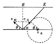 (2)船头应指向河的上游,并与河岸成一定的角度θ,
