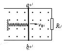 1、选择题  如图所示,固定在水平面上的光滑平行金属导轨,间距为L,右端接有阻值为R的电阻,空间存在在方向竖直、磁感应强度为B的匀强磁场。质量为m、电阻为r的导体棒ab与固定弹簧相连,放在导轨上。初始时刻,弹簧恰处于自然长度。给导体棒水平向右的初速度v0,导体棒开始沿导轨往复运动,在此过程中,导体棒始终与导轨垂直并保持良好接触。已知导体棒的电阻r与定值电阻R的阻值相等,不计导轨电阻,则下列说法中正确的是