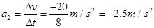 1、填空题 如图所示,为速度—时间图像,由图可知甲物体在做?运动,加速度?m/s2;乙物体的加速度?m/s2,说明乙正在?(填“加速”或“减速” ),?加速度大。