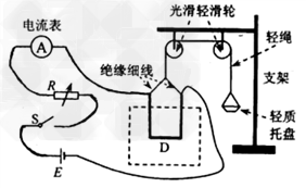 ③闭合开关S,调节R的值使电流大小适当,在托盘内重新加入适量细沙,使D________;然后读出_________________,并用天平称出_______;