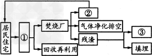 (5)有人设想在住宅小区附近建立小型生活垃圾焚烧厂,其流程如下.请将表中①②③所要表达的内容填在下面的横线上.