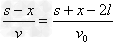 设第二次碰撞时小球到墙的距离为x,则在两次碰撞之间小球运动路程为s-x,木块运动的路程为s+x-2l