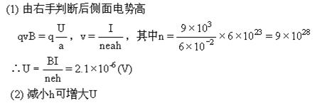 (1)铜片前后侧面哪一面电势高?电势差为多少?