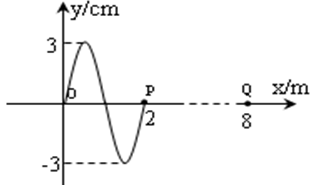3、计算题 (9分)如图所示,一列沿x轴正方向传播的简谐横波在t=0时刻的波形如图中的实线所示,此时这列波恰好传播到P点,且再经过1.2s,坐标为x=8m的Q点开始起振,求: