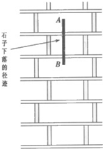 5、简答题 若从砖墙前的某高处使一个石子由静止自由落下,用照相机拍摄石子再空中的照片如图所示,由于石子的运动,它在照片上留下了一条模糊的径迹AB.已知该照相机的曝光时间为0.015s,每块砖的平均厚度为6cm,试估算这个石子是从距离位置A多高处自由落下的?(g=10m/s2)