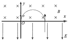 5、计算题 如图所示,在x轴上方有垂直于xy平面向里的匀强磁场,磁感应强度为B。在x轴下方有沿y轴负方向的匀强电场,场强为E,一质量为m,电荷量为-q的粒子从坐标原点O沿着y轴正方向射出,射出之后,第二次到达x轴时,它与点O的距离为L,不计粒子所受重力。求:
