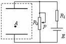 2、计算题 在如图所示的装置中,电源电动势为E,内阻不计,定值电阻为R1,滑动变阻器总阻值为R2,置于真空中的平行板电容器水平放置,极板间距为d.处在电容器中的油滴A恰好静止不动,此时滑动变阻器的滑片P位于中点位置.