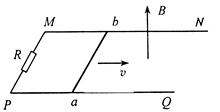 =0.5m,其电阻为r,与导轨接触良好,整个装置处于方向竖直向上的匀强磁场中,磁感应强度B=0.4T,现使ab以 =10m/s的速度向右做匀速运动.