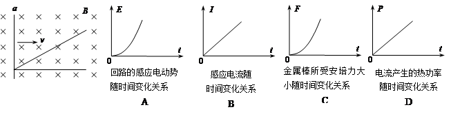 向右运动,以导体棒在图所示位置的时刻作为计时起点,下列物理量随时间变化的图像可能正确的是