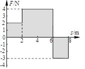 本题解析:根据作用于物体的外力与位移的关系图象与横轴所围面积表示功,物体的外力做功W=4J+16J-6J=14J。由动能定理,W=