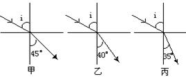 2、选择题 右图是光线以相同的入射角从空气射入三种不同介质时的折射情