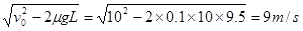 [? ] A.摆球经过P点时加速度等于零 B.从O到P的过程摆线的拉力对摆球不做功 C.摆球从O到P的重力势能增量小于F对摆球做的功 D.从O到P摆球的机械能增加 参考答案:A 本题解析: 本题难度:一般 5、计算题 动摩擦因数为0.1的水平面上,放有距离9.5m的两个物体A和B,质量分别为mA=2kg,mB=1kg,如图所示,现给A一个冲量使A以10m/s的初速度向静止的B运动当A与B发生碰撞后,A仍沿原方向运动,且A从开始运动到停止共经历6s,求碰撞后B经多长时间停止运动? 参考答案: 本题解析:A匀减速:- 本题难度:一般 |