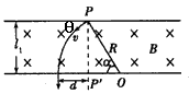 粒子在磁场中做匀速圆周运动(如图), 设P’为虚线与分界线的交点,∠POP’=α 。由于粒子在分界线处的速度与分界线垂直,圆心O应在分界线上,OP长度即为粒子运动的圆弧的半径R。由几何关系得