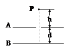 1、填空题 如图所示,A、B为平行金属板,它们之间的距离为d,在A板的缺口的正上方距离为h的P处,有一质量为m、带电量为q的液滴由静止开始自由落下,若要使液滴不落在B板上,两板间场强至少为?,两板间的电势差至少为?。
