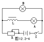 2、选择题 。如图12.3-所示电路中,A、B是相同的两小灯.L是一个带铁芯的线圈,电阻可不计.调节R,电路稳定时两灯都正常发光,则在开关合上和断开时[ ]