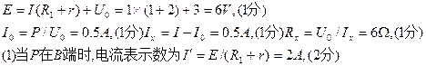 本题解析:灯L的电阻RL=6Ω正确,错在没有看出RPA和R2串联部分已被短路,(2分)