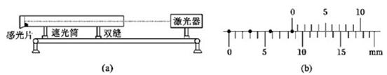(2)通过测量相邻光点的距离可算出激光的波长,据资料介绍,如果双缝的缝间距离为a,双缝到感光片的距离为L,感光片上相邻两光点间的距离为b,则激光的波长λ=