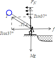 由平衡条件列式: 竖直方向:F浮=mg+Tsin37° 水平方向:F风=Tcos37° 得:T=10NF风=8N (2)对小强受力分析并分解如图: