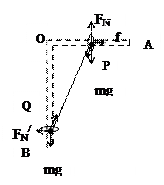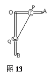 3、填空题 有一直角架AOB,AO水平放置,表面粗糙。OB竖直向下,表面光滑。AO上套有一个小环P,OB上套有一个小环Q,两环质量均为m,两环间由一根质量可忽略、不可伸长的细绳相连,并在某一位置平衡(如图13)。现将P环向左移一小段距离,两环再次达到平衡,移动后和移动前比较,AO杆对P环的支持力N ;细绳的拉力T? 。