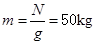 本题解析:以人为研究对象,受力分析如图 静止时 ……………………(1分) 人的质量为 ……………………(1分) 在电梯中,设加速度为a,向下为正方向,根据牛顿第二定律可得……………(1分)
