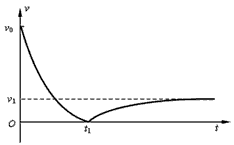 4、计算题 从地面上以初速度v0竖直向上抛出一质量为m的球,若运动过程中受到的空气阻力与其速率成正比关系,球运动的速率随时间变化规律如图所示,t1时刻到达最高点,再落回地面,落地时速率为v1,且落地前球已经做匀速运动。求: