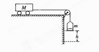 1、计算题 (8分)如图所示,把小车放在光滑的水平桌面上,用轻绳跨过定滑轮使之与盛有沙子的小桶相连,已知小车的质量为M,小桶与沙子的总质量为m,把小车从静止状态释放后,在小桶下落竖直高度为h的过程中,若不计滑轮及空气的阻力,求: