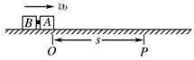 一起从O点滑出,滑行一段距离后到达P点,速度变为 ,此时炸药爆炸使木块A、B脱离,发现木块B立即停在原位置,木块A继续沿水平方向前进.已知O、P两点间的距离为s,炸药爆炸时释放的化学能均全部转化为木块的动能,爆炸时间很短可以忽略不计.求: