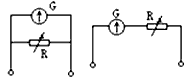 3、选择题  图中的甲、乙两个电路,都是由一个灵敏电流计G和一个变阻器R组成,它们之中一个是测电压的电压表,另一个是测电流的电流表,那么以下结论中正确的是