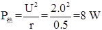 P出=U2I2-I22r="2.0×1.0" W-1.02×0.5 W="1.5" W