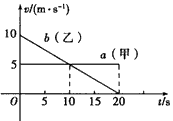 3、选择题 甲乙两辆汽车在平直的公路上沿同一方向做直线运动,t=0时刻同时经过公路旁的同一个路标。在描述两车运动的v-t图中(如图),直线a、b分别描述了甲乙两车在0-20秒的运动情况。关于两车之间的位置关系,下列说法正确的是