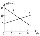 4、选择题 如图是A、B两物体从同一地点在同一直线上做匀变速直线运动的v-t图像,则(?)