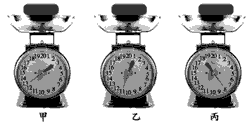 1、选择题  在箱式电梯里的台秤秤盘上放着一物体,在电梯运动过程中,某人在不同时刻拍了甲、乙和丙三张照片,如图所示,乙图为电梯匀速运动的照片。从这三张照片可判定