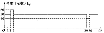 5、计算题 为了测量某住宅大楼每层的平均高度(层高)及电梯运行情况,甲、乙两位同学在一楼电梯内用电子体重计及秒表进行了以下实验,甲同学站在体重计上,乙同学记录电梯从地面一楼到顶层全过程中,体重计示数随时间变化的情况,并作出了如下图所示的图像。已知t=0时,电梯静止不动,从电梯内楼层按钮上获知该大楼共19层。 求: