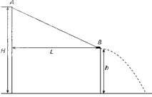 1、计算题 在一次国际城市运动会中,要求运动员从高为H的平台上A点由静止出发,沿着动摩擦因数为0.2的滑道向下运动到B点后水平滑出,最后落在水池中。设滑道的水平距离为L,B点的高度h可由运动员自由调节(取g=10m/s2)。求: