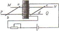 1、选择题 如图所示,通电螺线管置于水平放置的光滑平行金属导轨MN和PQ之间,ab和cd是放在导轨上的两根金属棒,它们分别静止在螺线管的左右两侧,现使滑动变阻器的滑动触头向左滑动时,ab和cd棒的运动情况是(? )