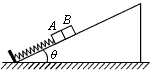 4、选择题 如图所示,一底端有挡板的斜面体固定在水平面上,其表面光滑,倾角为θ。一个劲度系数为k的轻弹簧下端固定在挡板上,上端与物块A连接在一起,物块B紧挨着物块A静止在斜面上。某时刻将B迅速移开,A将在斜面上做简谐运动。已知物块A、B的质量分别为mA、mB,若取沿斜面向上为正方向,移开B的时刻为计时起点,则描述A相对其振动平衡位置的位移随时间变化的图线是