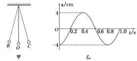 ![]() 3、填空题 如图甲是一个单摆振动的情形,O是它的平衡位置,B、C是摆球所能到达的最远位置。设摆球向右运动为正方向。图乙是这个单摆的振动图象。(取g=10 m/s2) 4、选择题 一个弹簧振子,第一次被压缩x后释放做自由振动,周期为T1,第二次被压缩2x后释放做自由振动,周期为T2,则两次振动周期之比T1∶T2为 5、简答题 关于简谐运动的回复力,下列说法中正确的是( ) |