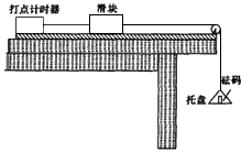 3、实验题 物理小组在一次探究活动中测量滑块与木板之间的动摩擦因数。实验装置如图,一表面粗糙的木板固定在水平桌面上,一端装有定滑轮;木板上有一滑块,其一端与电磁打点计时器的纸带相连,另一端通过跨过定滑轮的细线与托盘连接。打点计时器使用的交流电源的频率为50 Hz。开始实验时,在托盘中放入适量砝码,滑块开始做匀加速运动,在纸带上打出一系列小点。
