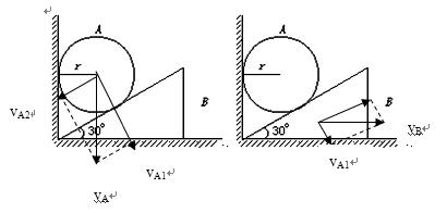 3、选择题 如图所示,斜劈B的倾角为30°,劈尖顶着竖直墙壁静止于水平地面上,现将一个半径为r的球A放在墙面与斜劈之间,并从图示位置由静止释放,不计一切摩擦,在A落地前某时刻速度为vA,则该时刻B的速度为(?)