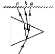 2、选择题 如图所示,一细光束通过玻璃三棱镜折射后分成a、b、c三束单束光,对于三种单色光下列说法正确的是