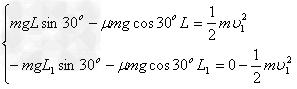 ,沿斜面上滑的距离为L2。则