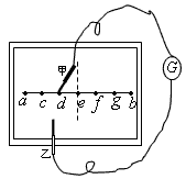 2、实验题 在做“电场中等势线的描绘”的实验时,先在导电纸上画出电极a和b(模拟为点电荷)的连线,在连线上选取间距大致相等的5个点c、d、e、f、g,如图所示。G为灵敏电流表,甲、乙为两探针,在实验时将a、b接入电源。