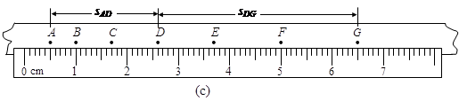 (3)某同学得到如图(c)所示的纸带。已知打点计时器电源频率为50Hz. A、B、C、D、E、F、G是纸带上7个连续的点。