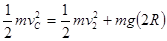 (2)设赛车恰好能通过圆轨道,对应圆轨道最高点的速度为v2,最低点的速度至少为vc,由牛顿第二定律及机械能守恒定律