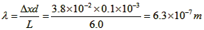 3、填空题 在测量某种单色光的波长的实验中,测得屏上第1条亮纹到第6条亮纹之间的距离为7.5mm,已知双缝间的距离为0.5mm,双缝到屏幕的距离为1m,则此红光波长为__________m.