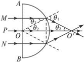 (2)(9分)一半圆形玻璃砖,玻璃的折射率为 ,AB为其直径,长度为D,O为圆心。一束宽度恰等于玻璃砖半径的单色平行光束垂直于AB从空气射入玻璃砖,其中心光线P通过O点,如图所示。M、N为光束边界光线。求M、N射出玻璃砖后的相交点距O点的距离为多少?![]() 参考答案:(1)BD;(2) 本题解析:(1)由于波的周期为T,故质点P的振动周期也为T,而波的速度却不是质点的速度,故A不对; 本题难度:一般 4、选择题 质点作简谐运动,下列各物理量中变化周期是振动周期一半的是 ( ) |