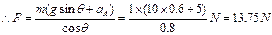 本题解析:(1)A 的合加速度方向沿斜面向上,其水平向右的分加速度和B的加速度相同,则